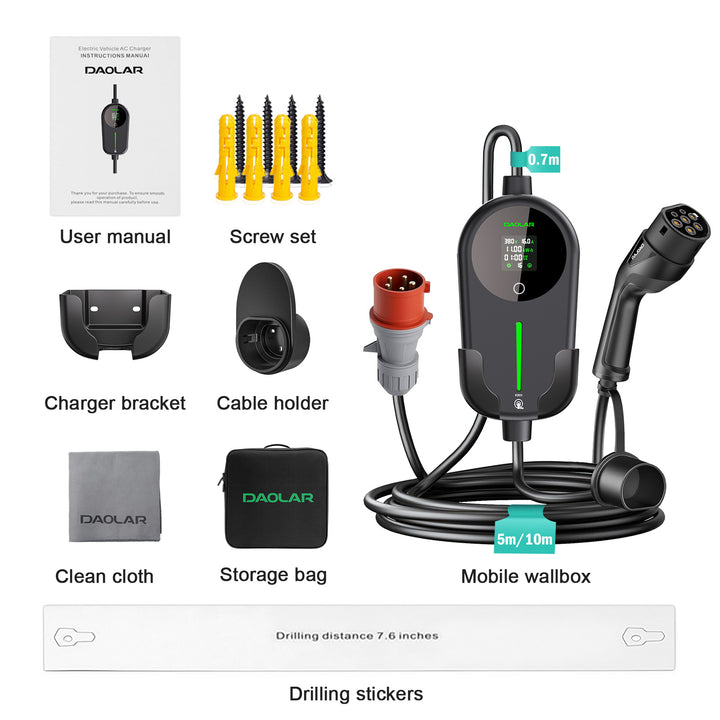 [Flaggskip] Daolar mobil veggboks 11 kW med strømmåler, 6–16A 3-faset type 2 ladekabel med justerbar ladekabel kWh, IP65 vanntett ladestasjon