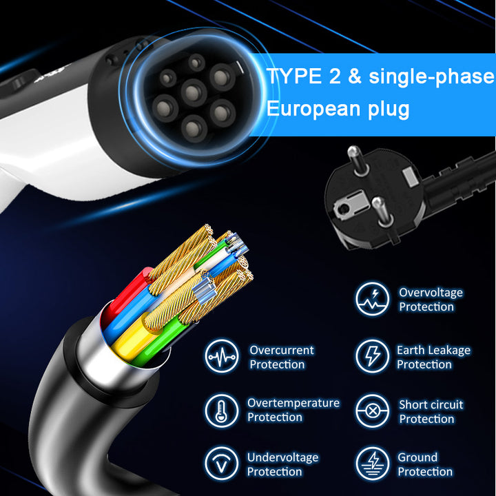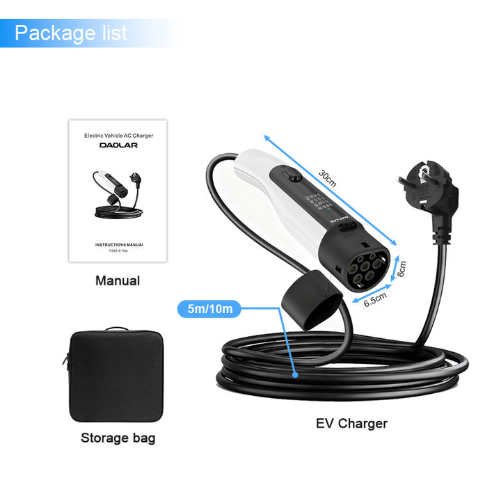 - Si farvel til klumpete løsninger! Vi har revolusjonert designet ved å fjerne den tunge kontrollboksen. Type 2-kontakten veier kun 0,6 kg, og selv den 5 meter lange **ladekabelen** veier bare 1,8 kg totalt. Legg den enkelt i bagasjerommet eller ryggsekken – virkelig en **lommestrørrelse elbil-lader**!