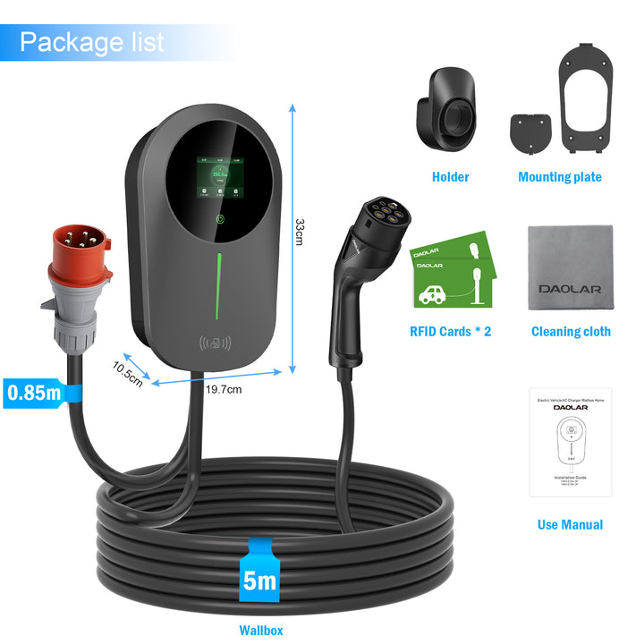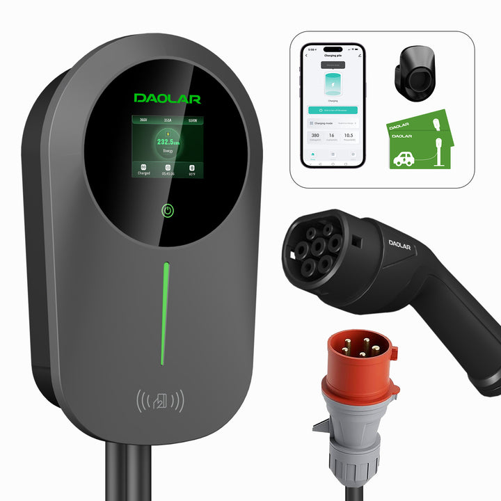Daolar Wallbox 11kw med APP 3-Phase 6-16 A Type 2 EV Ladestasjon med kontrollerbar digital skjerm og 2 stk RFID-kort for elbil, Oppgrader RCD B strømbeskyttelse