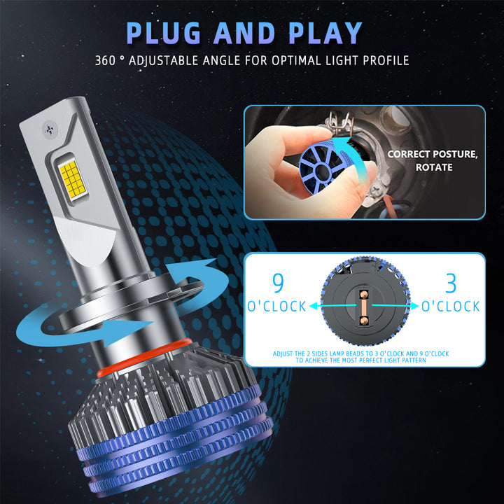 🛠️ Enkel Plug & Play-installasjon med CANBUS-klargjort Design: Nyt en ikke-destruktiv, rask og enkel installasjon. Den innebygde CANBUS intelligente dekodingsdriveren sikrer feilfri ytelse og kompatibilitet med 99 % av kjøretøyets systemer. Pærene har også en 360° justerbar vinkel for perfekt justering av LED-brikkene (kl. 3 og 9) for optimal lysprofil.