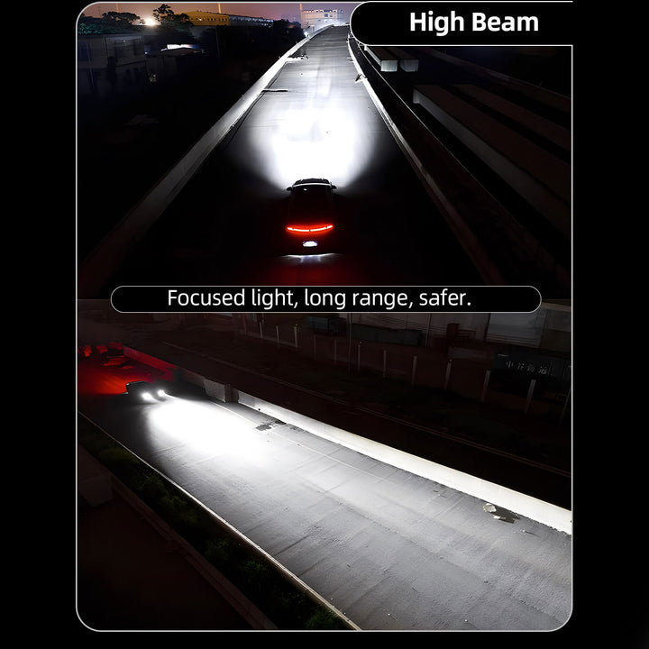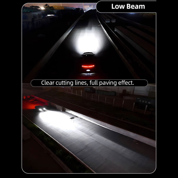 PERFEKT LYSBILDE & SIKKERHET: Den optiske utformingen etterligner halogenfilamentets posisjon for å produsere et superfokusert lysbilde. Nærlyset gir klare skjæringslinjer med full dekning, mens fjernlyset tilbyr fokusert, lang rekkevidde. Denne presisjonen sikrer at du ser klart uten å blende møtende trafikk, noe som skaper en tryggere kjøreopplevelse.