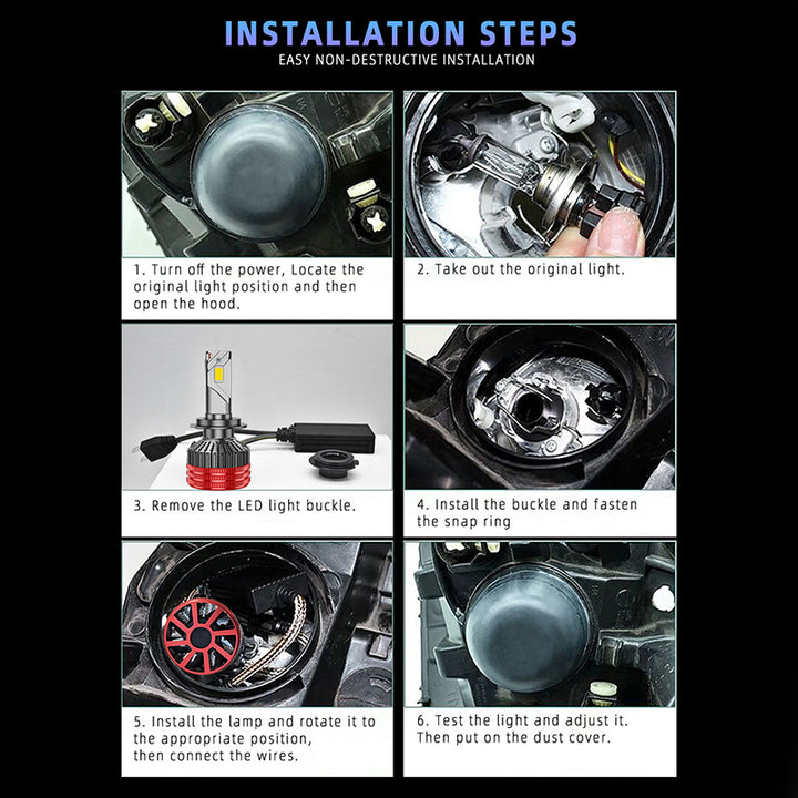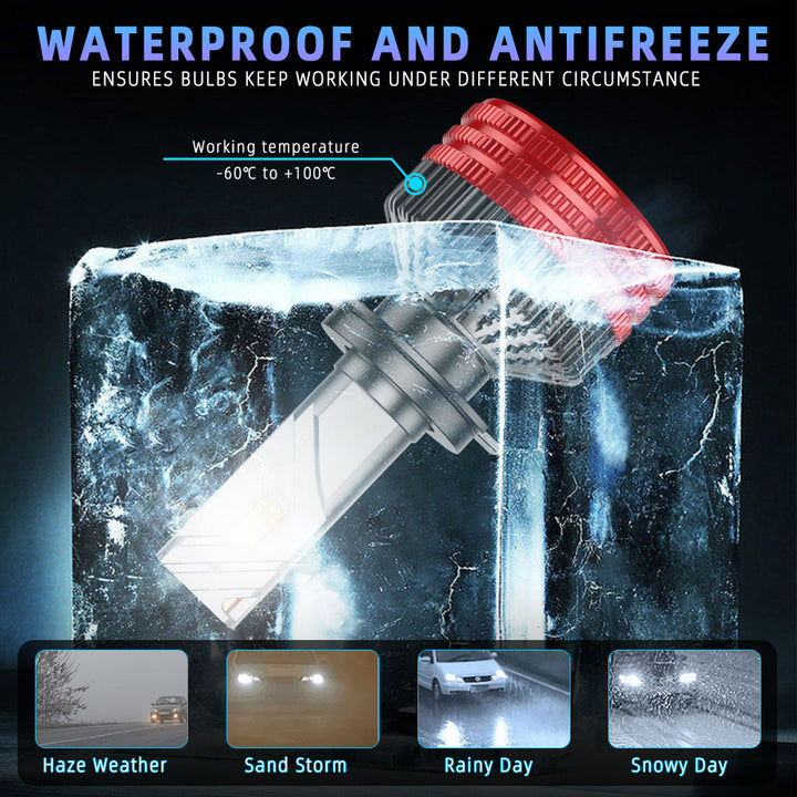 IP68 VANNTETT & ALLVÆRS HOLDBARHET: Designet for å tåle ekstreme forhold, fungerer disse pærene perfekt i temperaturer fra -60°C til +100°C. Enten det er kraftig regn, snø, sandstorm eller tåke, sikrer den vanntette og frostbestandige konstruksjonen pålitelig belysning. Det kompakte designet gjør det enkelt å installere uten skade med "plug and play" på få minutter.