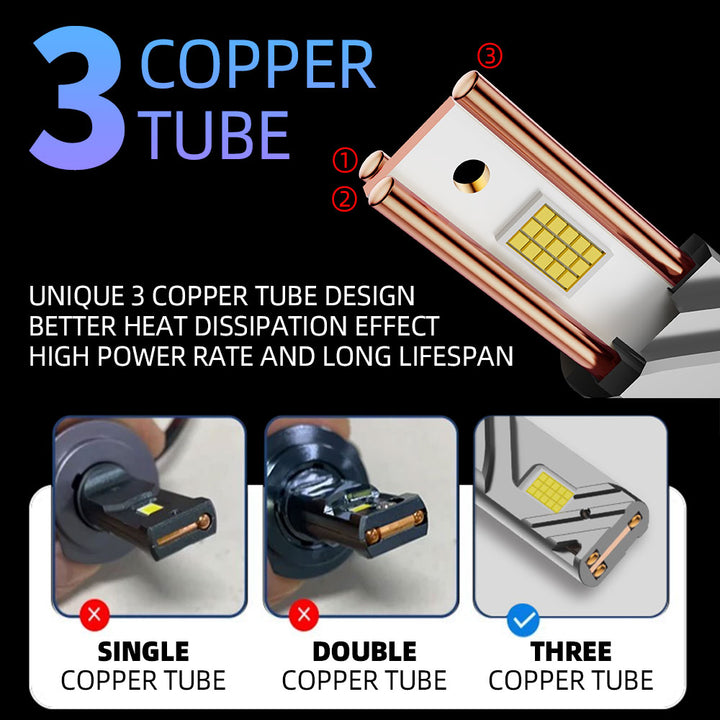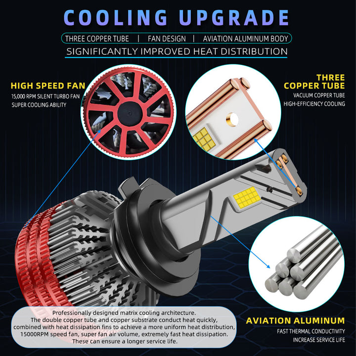 REVOLUSJONERENDE 3-KOBBERRØR KJØLESYSTEM: I motsetning til standardpærer som bruker ett eller to varmeelementer, har denne modellen et unikt 3-kobberrørsdesign for overlegen varmeledningsevne. Kombinert med et kabinett i flyaluminium og en stillegående turbo-vifte som går på 15 000 RPM, forhindrer denne matrise-kjølearkitekturen effektivt overoppheting, sikrer stabil høy effekt og betydelig lengre levetid.