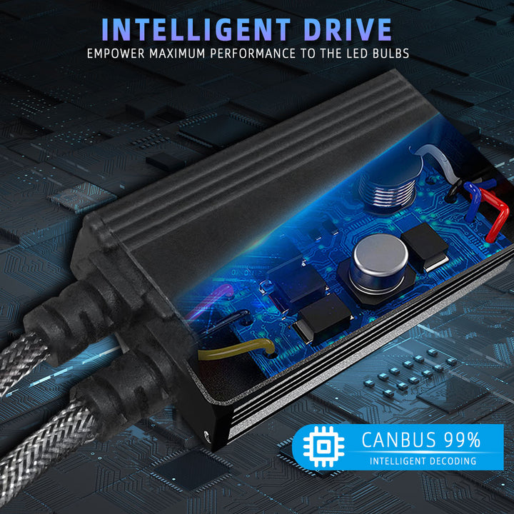 99 % CANBUS-KLAR & INTELLIGENT DRIVER: Utstyrt med en ekstern intelligent driverboks, har disse pærene avanserte dekodingsfunksjoner. De er kompatible med 99 % av kjøretøysystemene, og løser vanlige problemer som feilkoder på dashbordet, blinking eller radioforstyrrelser. Den eksterne driveren skiller også strømforsyningen fra pærelegemet, noe som bidrar ytterligere til varmehåndtering.